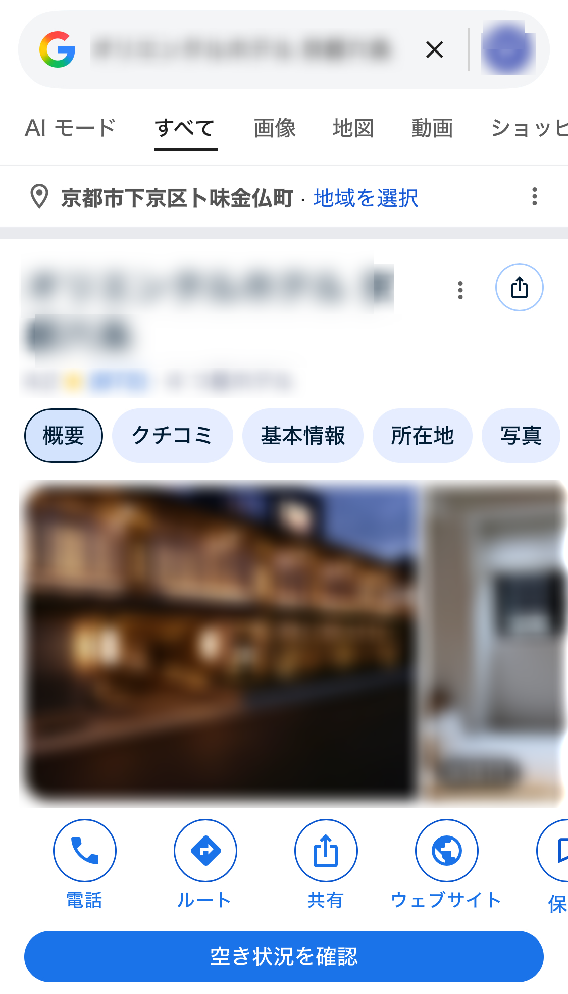 下記にQRコードを読み込んだ実際の画面を添付していますが、これは検索ブラウザでビジネス名そのままで検索をした挙動となんら変わりません。ビジネスプロフィールの概要を表示している状況に遷移することになるので、少なくともファーストビューでクチコミは見えません。