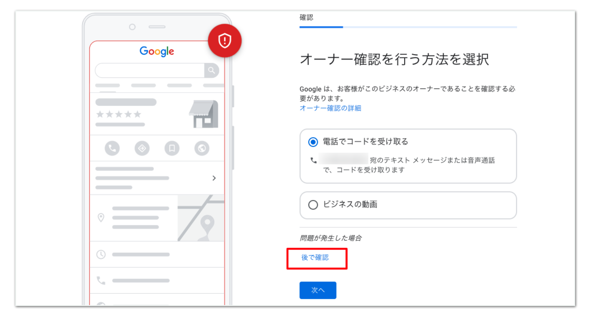 こうしたリスク避けるためには、オーナー確認の際に「後で確認」を選択し、オーナー確認を一度スキップし、開業日を設定してからオーナー確認に進むようにしてください。